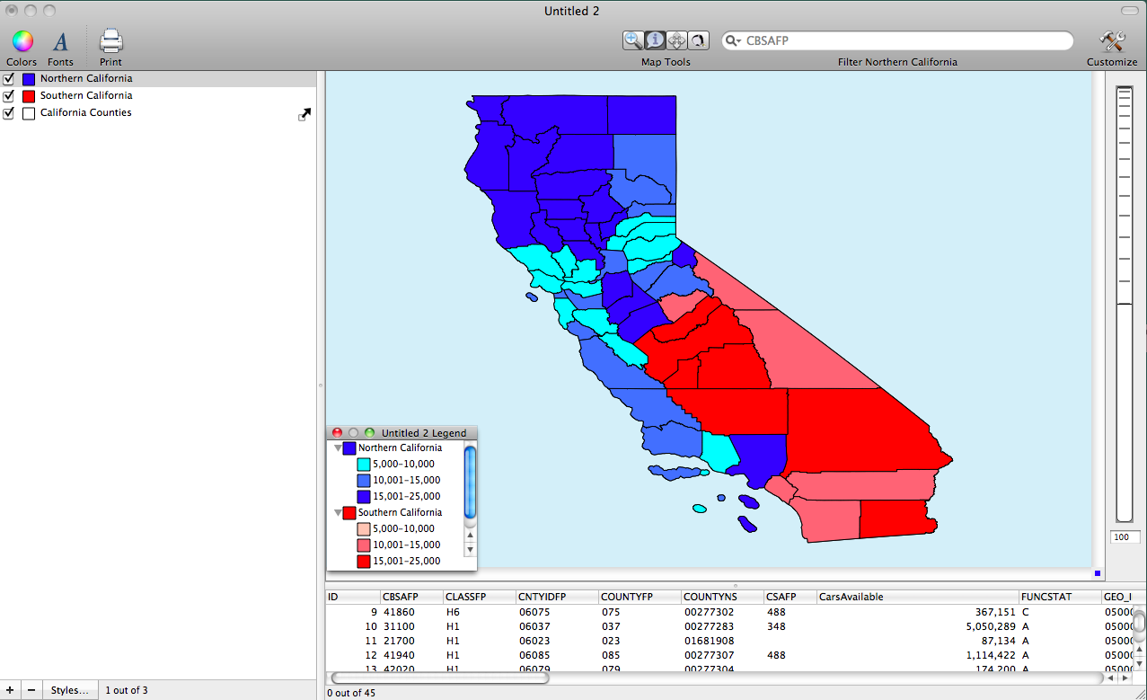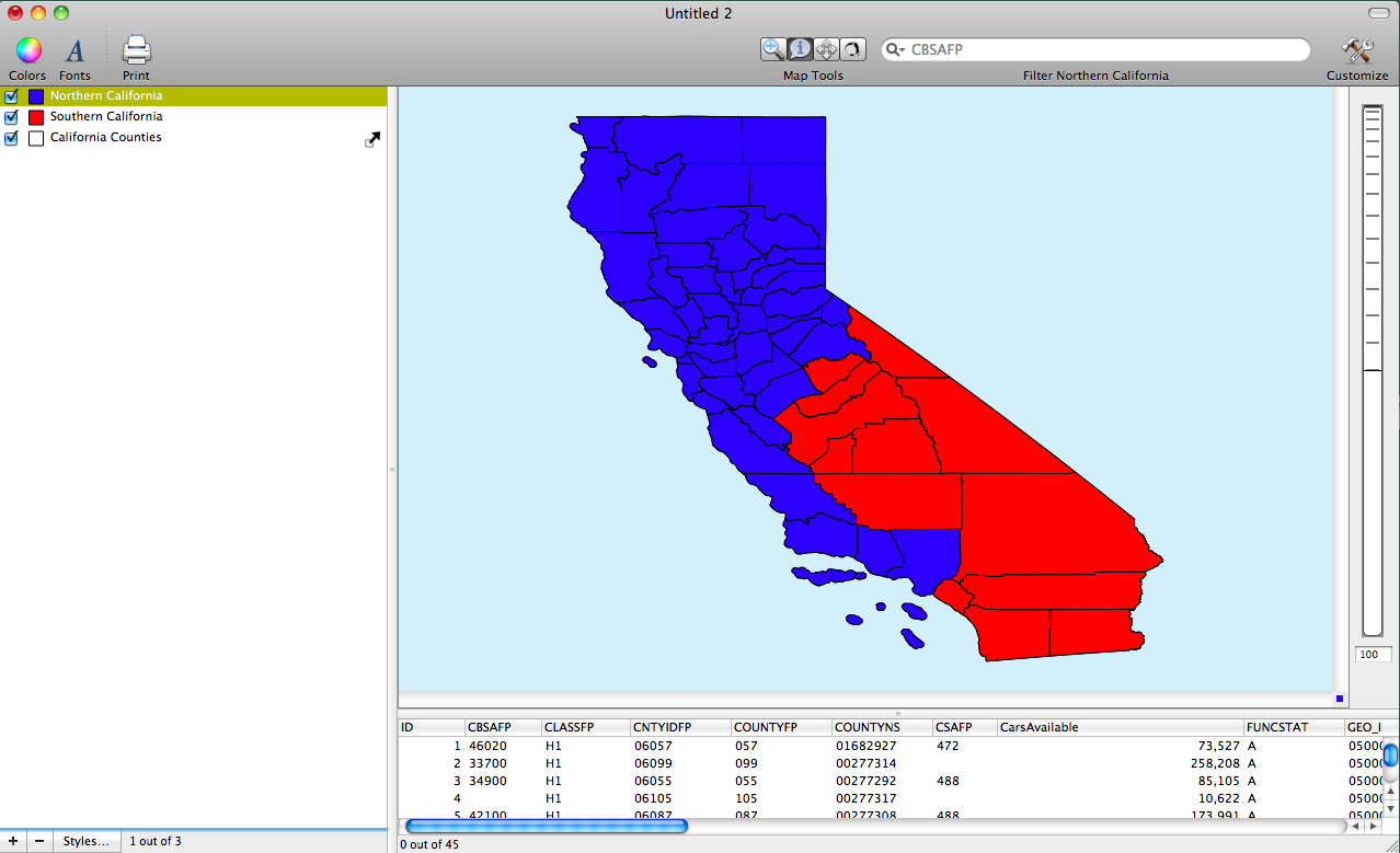 After I created the Southern California counties layer I used the identify tool to select the rest of the counties that were not in Southern California to create the Northern California Layer. Then I used the Create Layer from Selection tool to create the new layer.