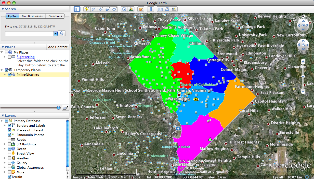 The Police districts in Washington D.C. that we want to view in Google Earth\