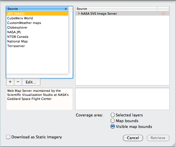 - Choose the WMS server to retrieve data from and then click Retrieve