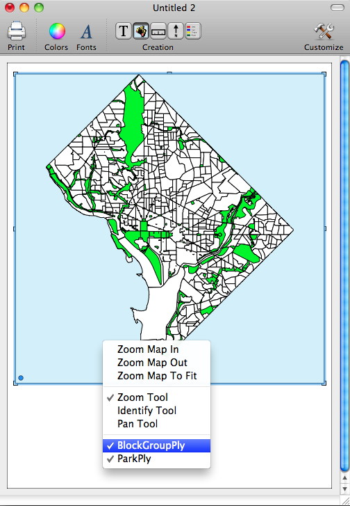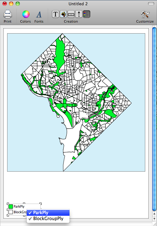 Additionally, there were a couple of functionality improvement from previous versions. Specifically, the Map Layout legend no longer displays errant caution triangle when there is space for all items (Used to do so if there wasn't room for one additional item), and the Context menu activation in the Map Layout page now selects the item clicked on, reducing confusion. These improvement have made Cartographica's map layout and design very streamline and easy to use, just as any mac program should be!