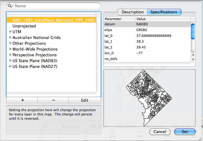 Notice that the Preview Window now shows an inaccurately projected map of Washington D.C.\