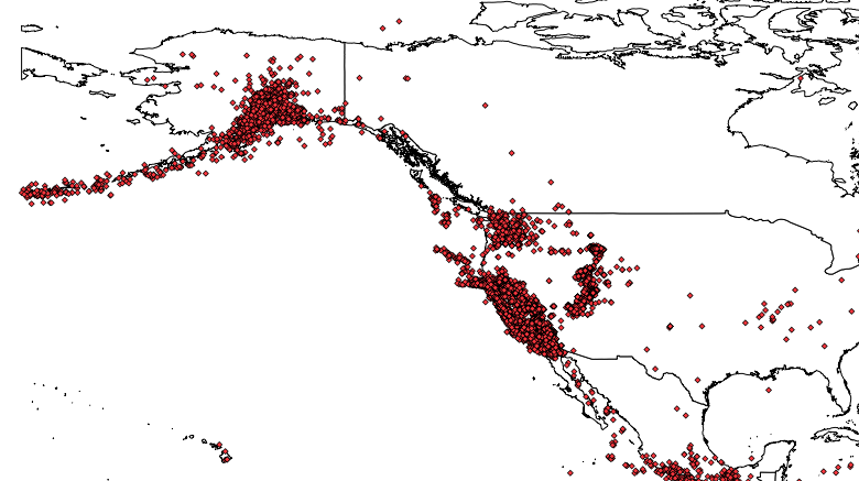 The recent news of the earthquake in China inspired me to find websites that provide spatial information about earthquakes. Basically, I wanted to find out if there are websites out there that describe where earthquakes are occurring, and at what magnitude. Naturally, the first organization I found that provides such a service is the United States Geological Survey, which has a number of maps that provide not only the location of earthquakes, but also other important information like magnitude and coordinates. The USGS provides global maps as well as more regionalized maps that provide a more detailed look at Earthquakes around the world. An interesting aspect of the website is that it provides up to date information about earthquakes, and it is amazing to see how many earthquakes occur on a very regular basis. For example at the time of this writing there are 165 earthquakes reported on the website that have occurred within the past seven days. Many of these earthquakes are small, but several are in the 5.0-6.0 range, which is pretty large. Another interesting website that I found covering this subject was the IRIS Seismic Monitor, which provides the location of seismic activity throughout the world. It provides the location, time, and magnitude of the seismic events and also provides coordinate information. A final couple of websites that I found on this subject actually provided GIS data to download so that you can explore earthquakes in Cartographica. You can find earthquake data from 2000 at GeoComm and you can find a shapefile of the earth at APRS . I have provided a few images of the downloaded data being used in Cartographica.