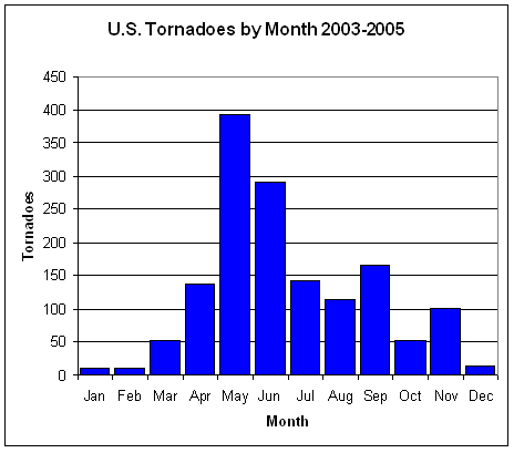 I found an interesting website on the National Oceanic and Atmospheric Administration's website. The website provides a lot of historical information about tornados in the United States. A particularly interesting fact from the website is that there are comparatively few tornados in the months of February and March, which makes the recent outbreak seem that much more unusual and unfortunate. The image below is a bar graph of the monthly tornado frequency. You can see the limited number of tornados this time of year. Read more throughout the report on the NOAA link posted above to find out about more about Tornados in the U.S.