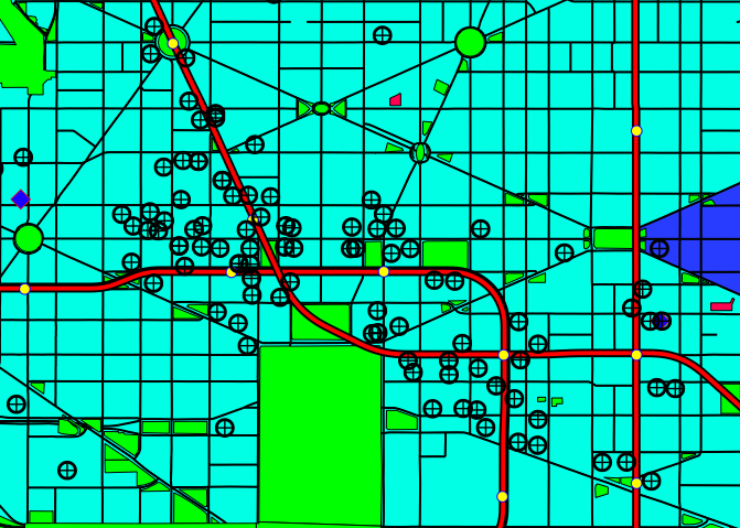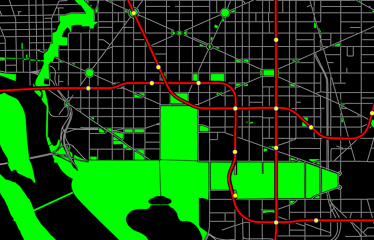 Below are a few maps of the city that I felt were pretty interesting both as someone who enjoys making maps and who enjoys manipulating a great amount of data. I included some information about transportation lines, transportation stations, parks, banks, and police stations.