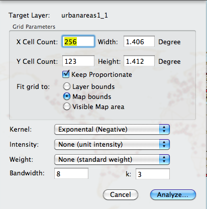 I recently found a website for Nordpil who have made available a data set of major urban centers world wide. The data set contains population data for all of the world's major cities. I created a Kernel Density Map using Cartographica to show where the highest densities of urban areas are located. I discuss the process in this post.