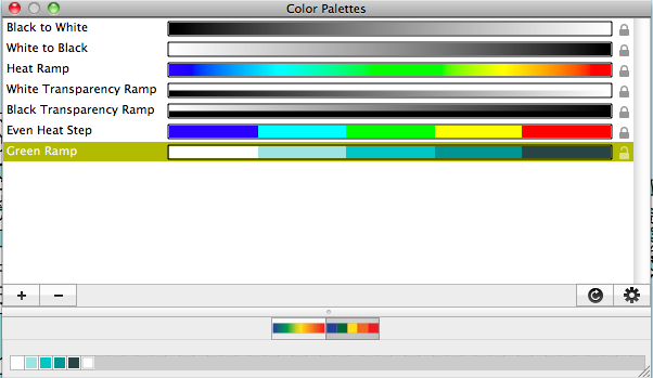 The image below shows the Layer Styles Window (On left side of screen) and the Color Palettes Window. In order to change the Color Palette of the data we wish to display drag and drop the new color palette onto the central window of the Layer Styles Window